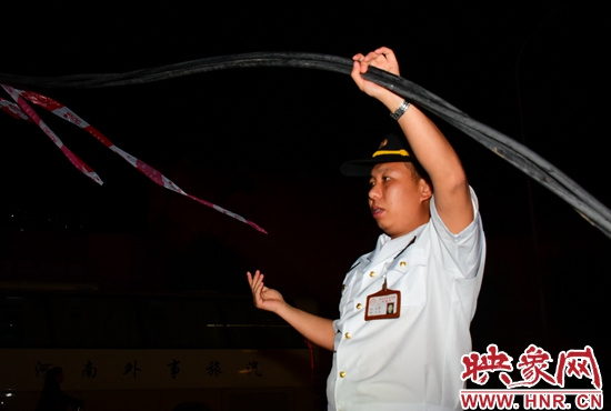 鄭州市供電公司配電服務(wù)中心八名工作人員接到搶修工單后,迅速趕到事發(fā)現(xiàn)場處置。他們一邊搶修,一邊向路邊商戶了解情況,尋找肇事車輛。