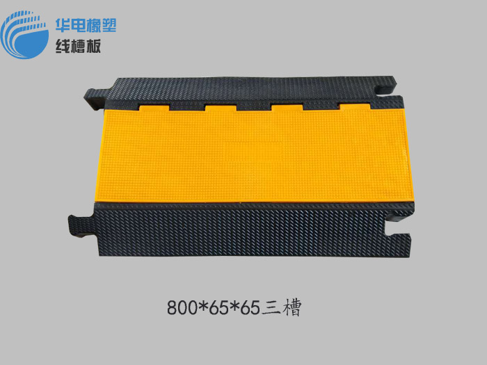 線槽板的頭部凸出部分卡著另一塊線槽板的尾部凹槽部分,相互卡住可以防止線槽板跟隨車輛前行或后退,更好的保護電纜。另外線槽板雖為橡膠制品,有一定的柔韌性,但為了延長使用壽命,好不要高距離拋扔。使用完畢后如需清洗,可用濕布擦拭完畢后,全部統(tǒng)一放在平整地面并正面疊放,防止底部變形,影響與蓋板的貼合度。